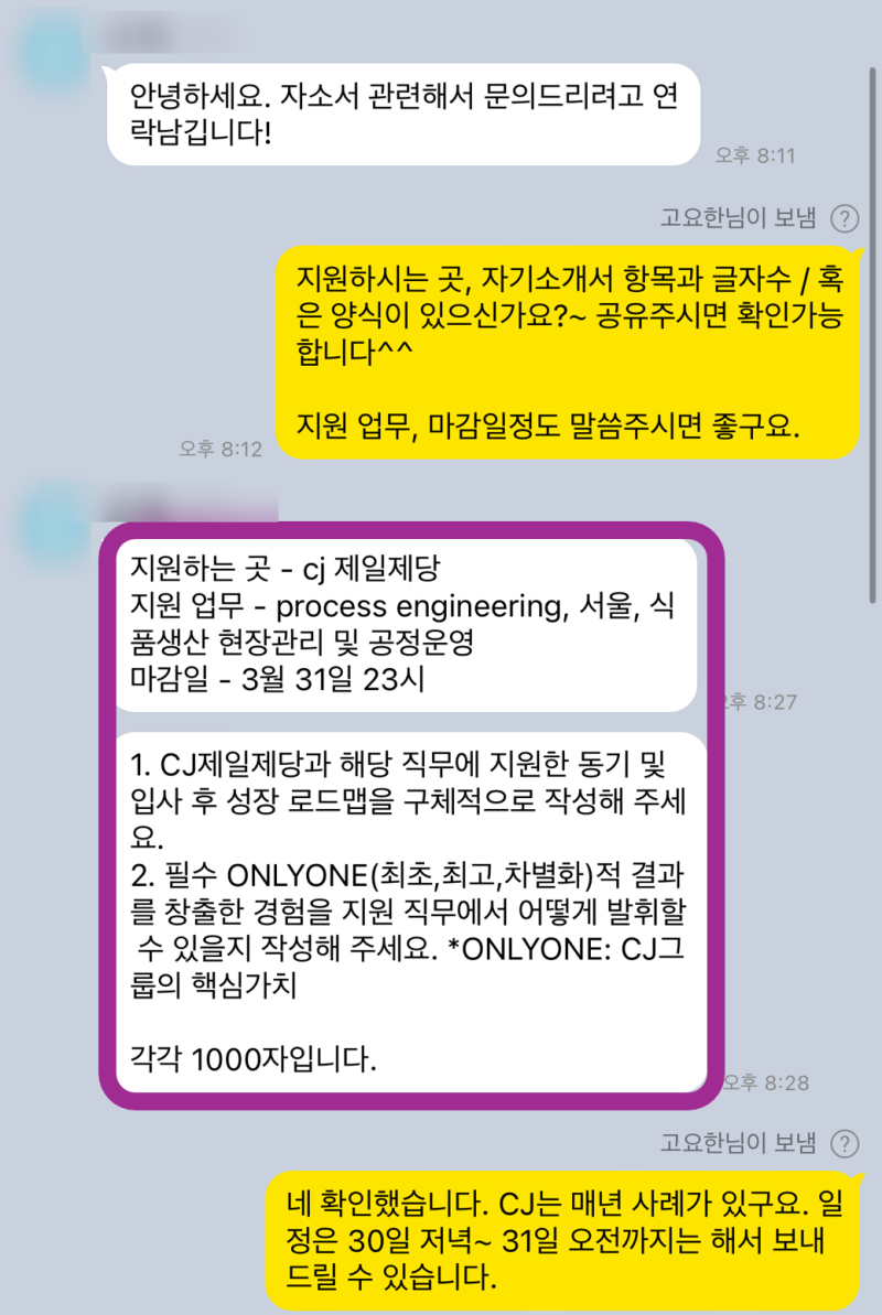 #자기소개서 #자소서 #자기소개서대필 #자소서대필 #자기소개서첨삭 #자소서첨삭 #취업컨설팅 #취업준비 #합격자소서 #대기업자소서 #신입자소서 #CJ제일제당 #CJ제일제당자소서 #CJ제일제당채용 #생산기술 #품질관리 #자기소개서전문가 #취업성공 #서류합격 #첨삭전문가 #자기소개서의뢰 #취업고민 #채용직무정보#생산직자소서#채용공고#자소서예시#자소서대행#자기소개서대행#자소서항목#자기소개서문항#합격후기#이력서#경력기술서#직무수행계획서#연봉#자소서쓰는법#자기소개서쓰는법