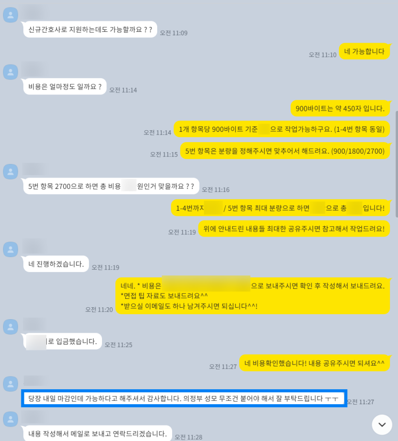 여러분의 소중한 경험과 역량을 빛나게 해줄 맞춤형 자기소개서 첨삭 및 대행 서비스를 제공합니다.
