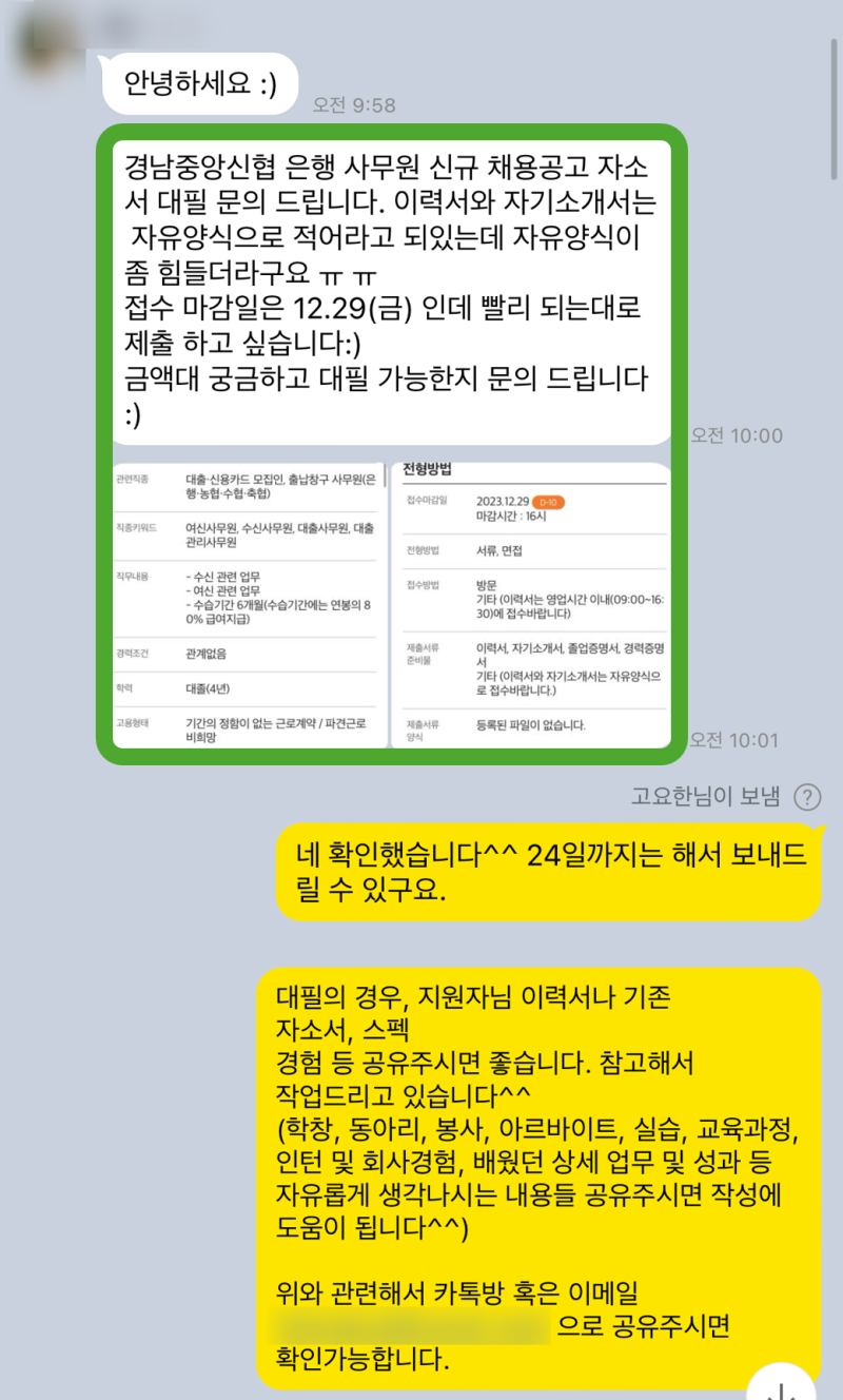 자소서 첨삭/대필 문의는 언제든지 환영입니다!