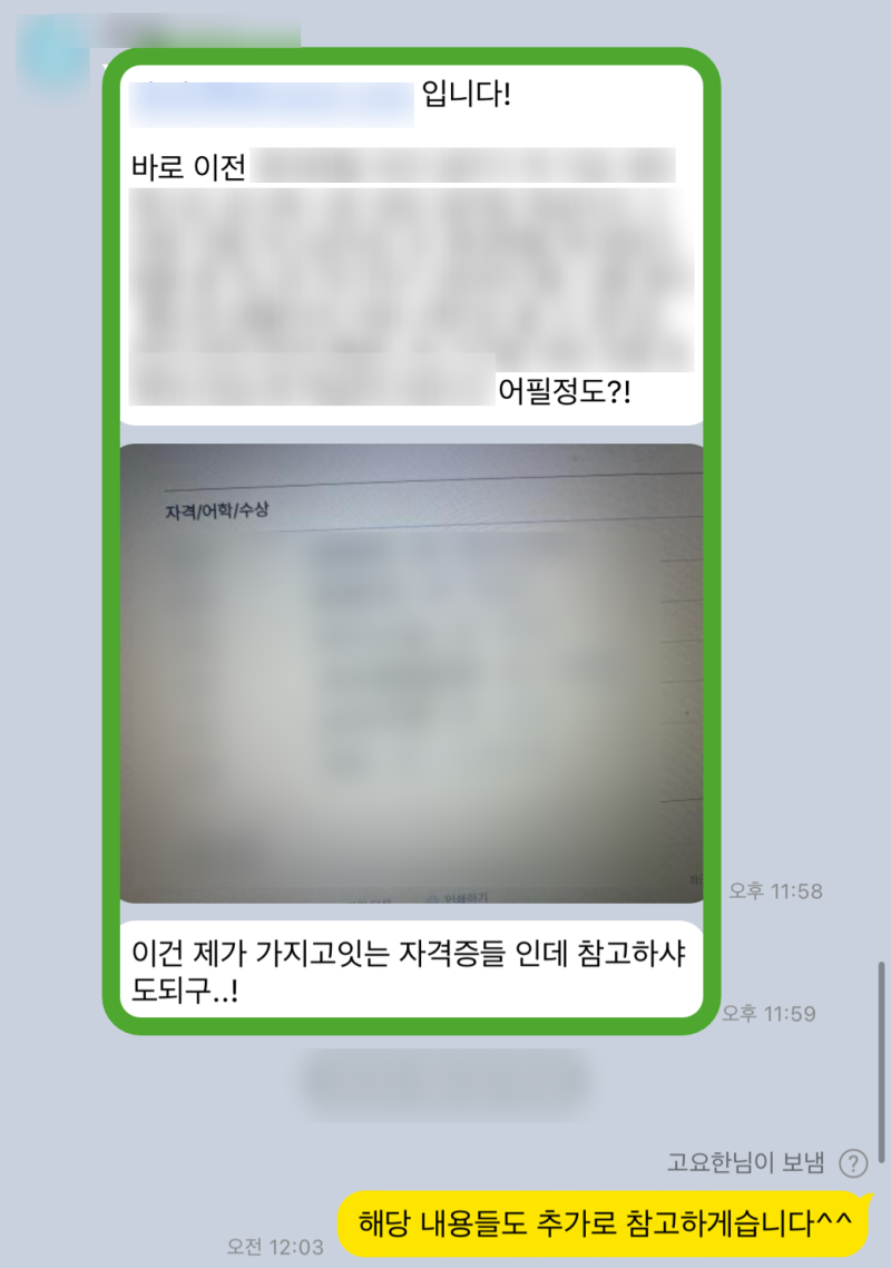 지원자 이름님은 자신의 특이한 경험을 소개하며, 창의적인 면모를 어필하려고 하셨습니다.