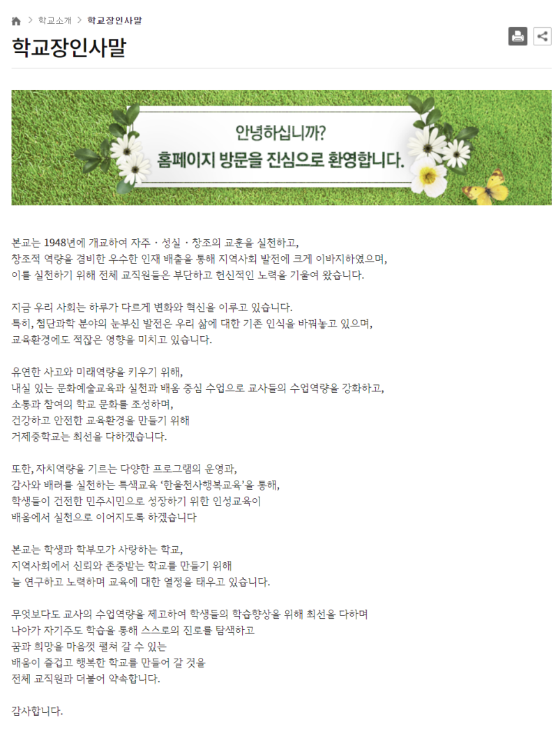 - ✔ 비전: 미래 사회를 선도하는 글로벌 인재 양성, 건강하고 행복한 교육 공동체 구축
