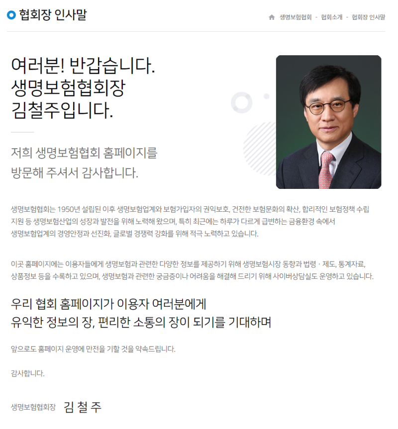 💡 비전: ‘국민과 함께 성장하는 생명보험 산업 선도’ – 생명보험의 사회적 역할을 확대하고 국민의 삶의 질 향상에 기여하는 것을 목표로 합니다.