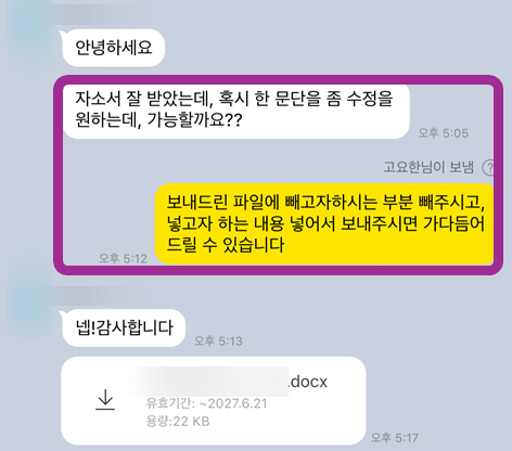 >> 4단계: 수정 및 보완 작업 (합격 자소서 완성까지 책임)