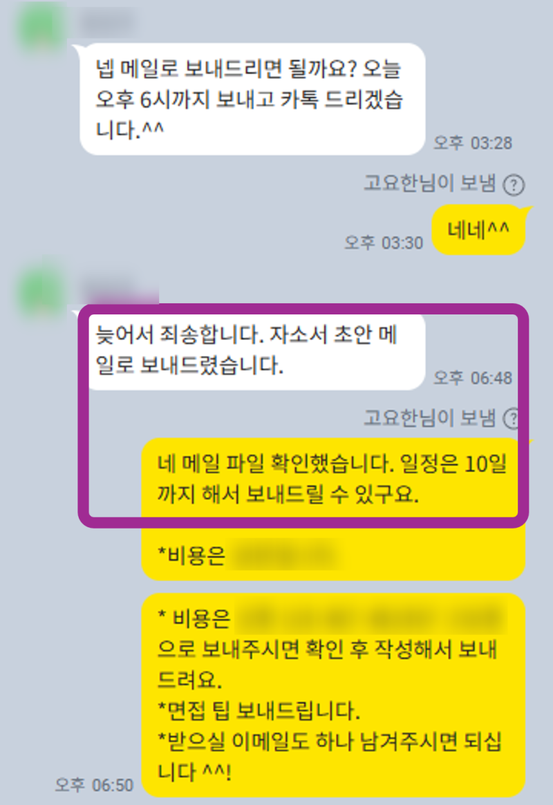 - >> 3단계: 1:1 맞춤형 컨설팅 및 첨삭/대필 진행 (화상, 전화, 문서 피드백 등 편의에 맞게 진행)