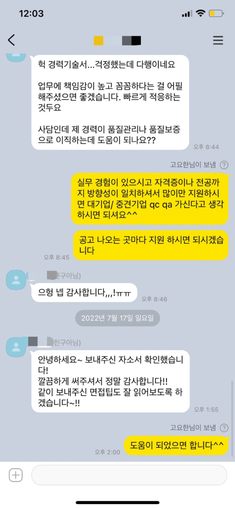 - >> **자료 공유:** 이력서, 기존 자소서, 채용공고 등 지원자료 수령