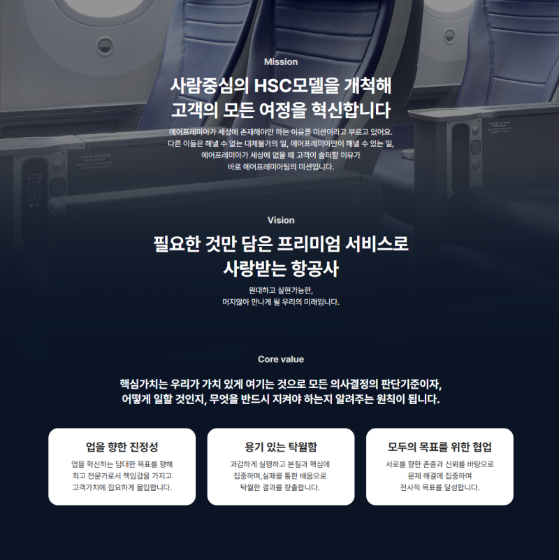 - 비전: 합리적인 가격으로 편안한 여행을 제공하는 글로벌 항공사