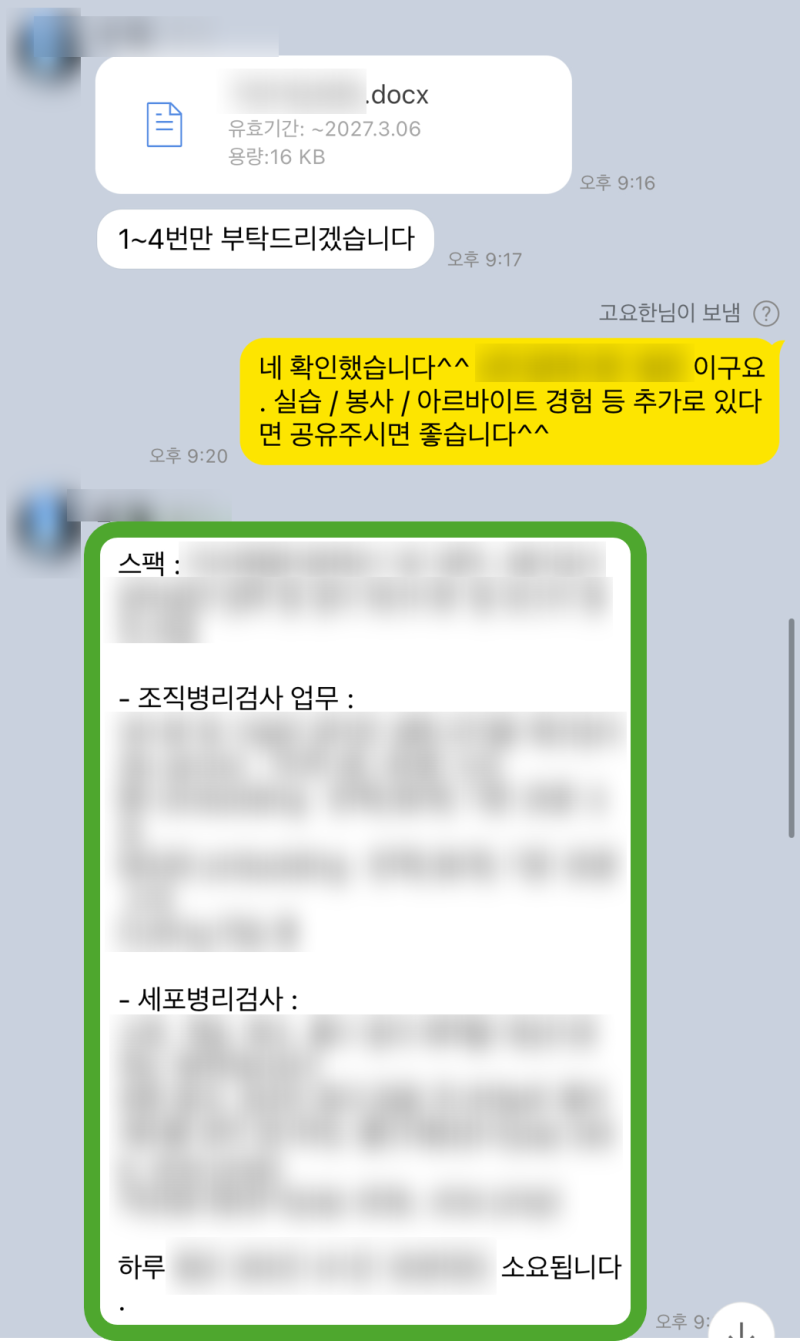 정말 이건 거의 대필 수준으로 갈아엎었어요! 고객님이 전에 쓰셨던 자소서를 들고 오셨는데, 글자 수도 안 맞고 문장도 어색하고… 그래서 첨삭하면서 거의 다시 짰다고 봐야 해요 제발 다음엔 하루 전에는 와주셔요..! 진짜 그래야 저도 여유 있게 도와드릴 수 있거든요