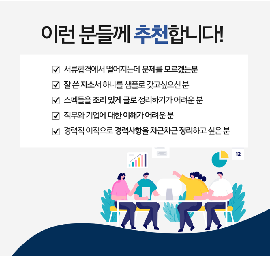 지원자분의 잠재력을 최대한 끌어올려, 서류 합격을 넘어 최종 합격까지 이어질 수 있도록 꼼꼼하게 도와드립니다. 🤝