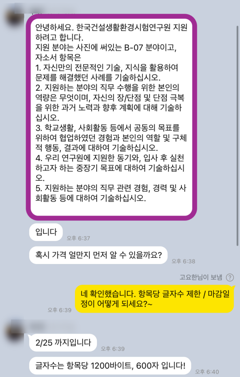 한국건설생활환경시험연구원 채용, 자소서 문항 분석 및 작성법