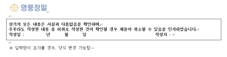 영풍정밀 채용 자소서 문항 합격 후기