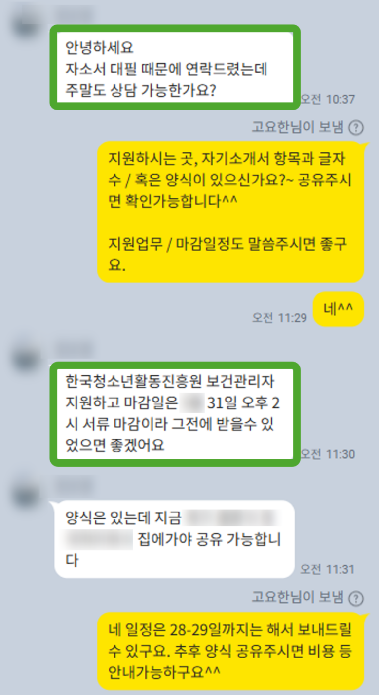 한국청소년활동진흥원 자소서 첨삭 대필 합격후기