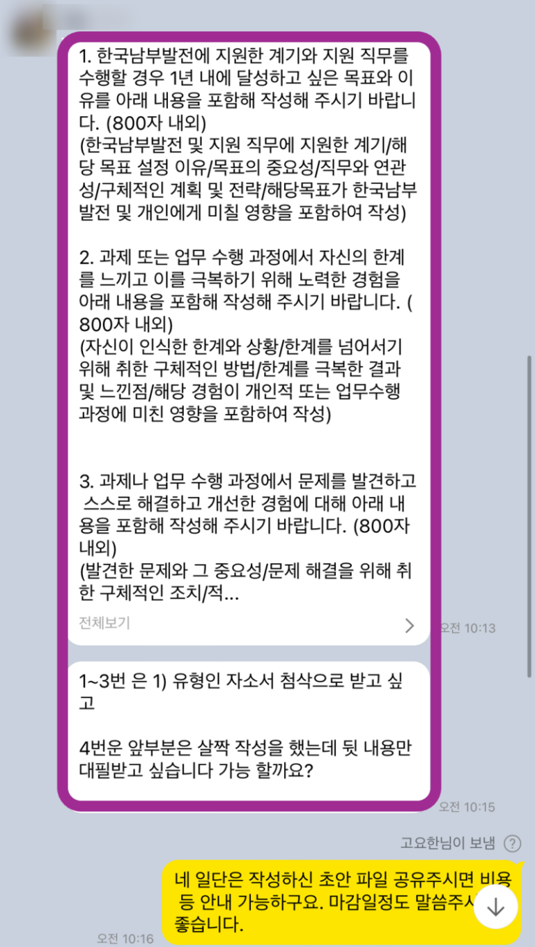 중견기업 채용 자소서 작성법, 자기소개서 첨삭 대필 후기