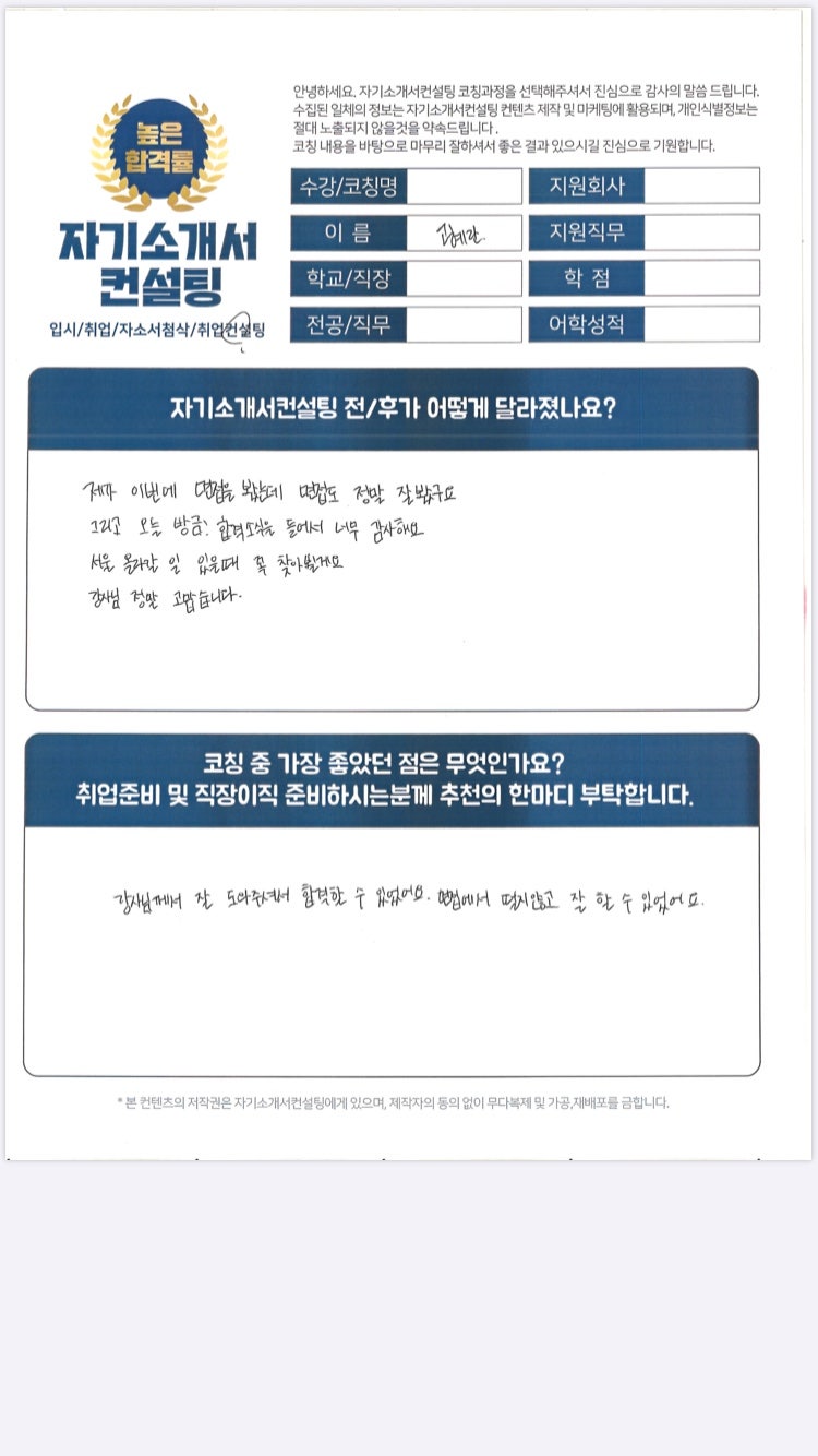 ✨합격의 순간✨ 선진화학 면접 컨설팅/코칭 후기, 성공 전략 공개!