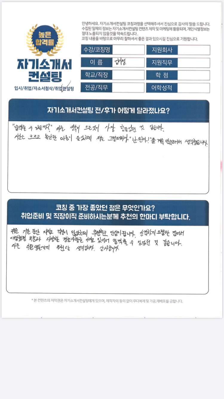 육군부사관 합격 자소서, 전문가의 1:1 코칭으로 서류 완벽 통과!