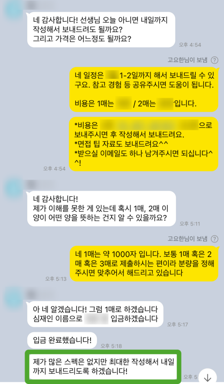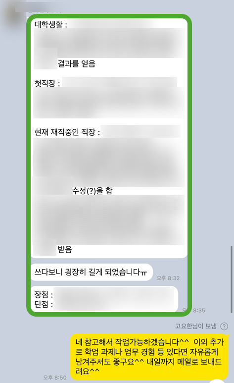 자기소개서 자소서 첨삭 받고 합격한 후기